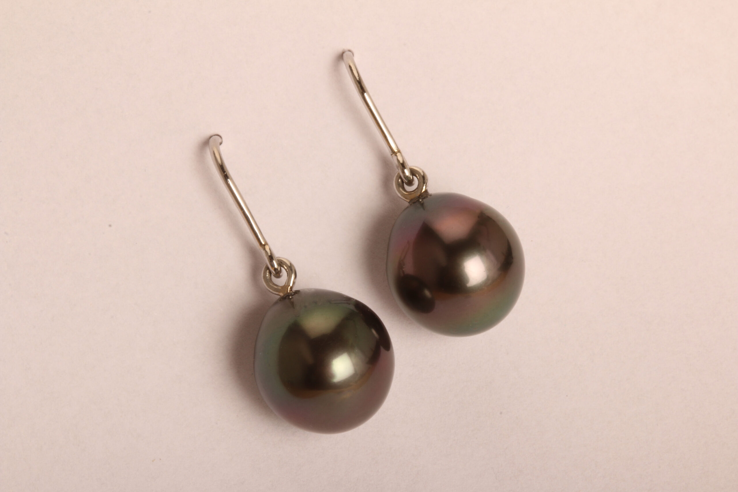 Perlen: Tahitizuchtperlen, grün, Tropfenform ca.11 x 11,5 mm
