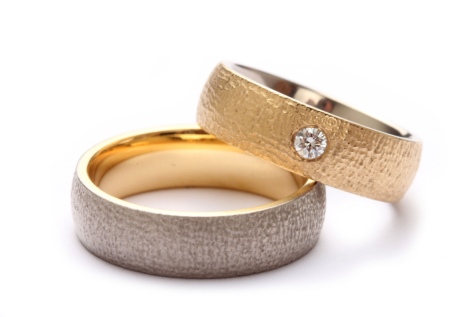 Trauringe in Gold mit handgefräster Strukturoberfläche